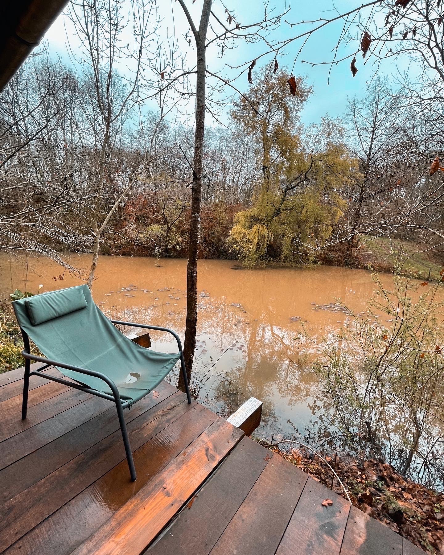 Super moment de détente au bord de l'étang. Malgré le mauvais temps, nous avons pu nous réchauffer dans le bain nordique et se reposer dans la cabane joliment decorée.