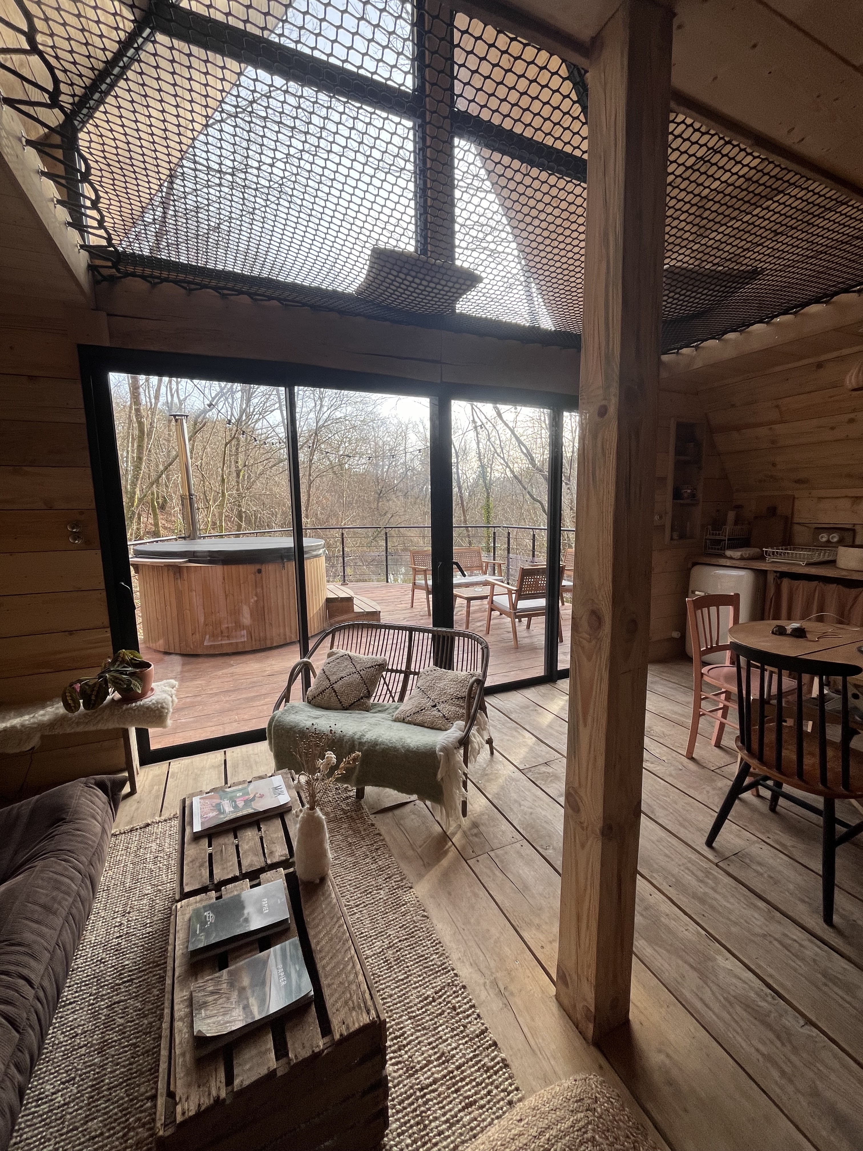 Un petit cocon de douceur au creu des arbres. Le son de la pluie sur la tôle du toit et le bain nordique pour se réchauffer dans le froid de l'hiver. Jolie bulle de calme, belle décoration. A découvrir :)